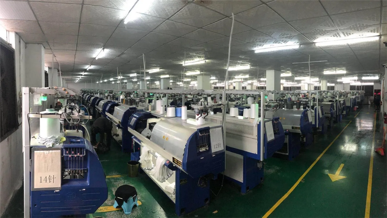Наша фабрика има 5000 квадратних метара и 200 запослених. У раду имамо 100 машина за равно плетење џемпера и машина за предење.